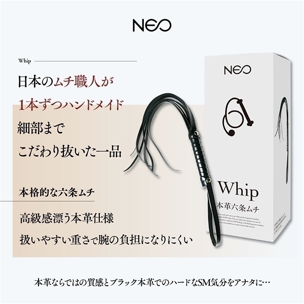 本革を使用した高級感漂う本格的な六条ムチ日本のムチ職人が一本ずつハンドメイドしているため細部までこだわり抜いた一品扱いやすい重さで腕の負担になりにくい30年の歴史を持つ老舗SMメーカーから新ブランド「NEO」が登場!本格的で初心者にも扱いやすい「本物」をお届けします。
