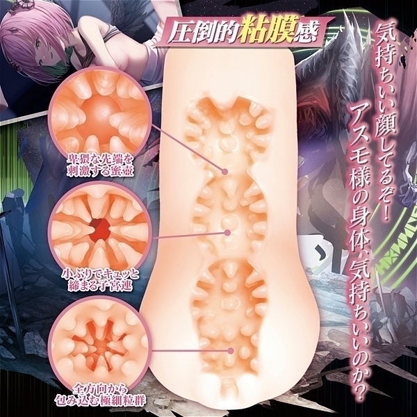 「YELOLAB×オトギフロンティアR」コラボ作品。超絶美麗パッケージ「オトギフロンティアTHEHOLEアスモデウス」の登場です。「YELOLAB」が魔王アスモデウスの為に作ったこだわりのオナホールは重量300グラム、全長155ミリと使いやすいサイズのハンドホールです。魔王アスモデウスの秘部は「圧倒的粘膜感」の絡みつく粘膜イボ群子●壺構造。3つに連なるイボの子●壺を配置した構造は全方向から絡みつき纏わりつく粘膜イボ群のち●壁感触を最大限に楽しめます。奥に進むにつれキュッとしまった子●壺の締め付ける感触が射●感を一層高めます。一連の流れで全方向粘膜イボのち●壁をしっかり感じ取れる「粘膜内部構造」をお楽しみください。素材は柔らかく粘膜感を演出する極上な「高品質ソフト素材」を採用し、魔王アスモデウスのやわらかい秘部を余すことなくご堪能いただけます。「最強の魔王、アスモ様のお出ましだぞ!序列は32位だけど、そんなの関係ないからな。本当はもうお前と一緒に遊びたくても、最強の魔王であるために我慢もできるんだ。そうだ、お前には特別これを見せてやる。アスモ様のマル秘コレクションだぞ!光栄に思え!」※保管に便利なブリスターケース、YELOLABオリジナルローション付属。