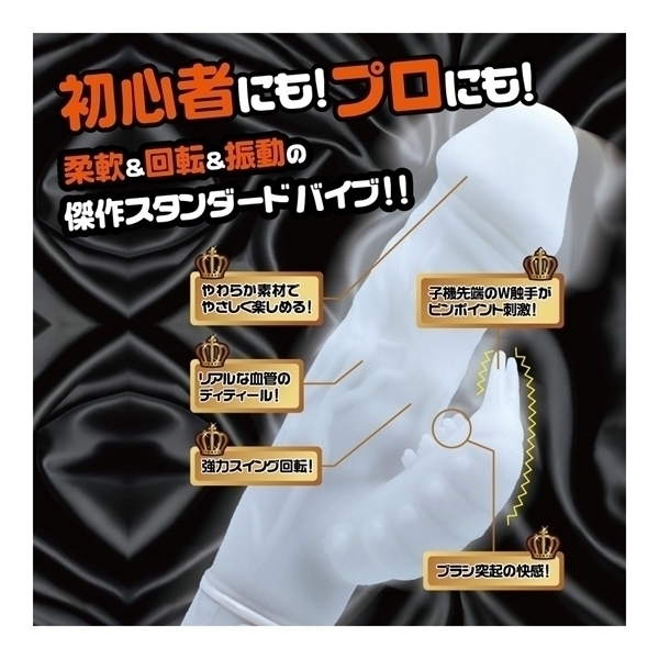 あの大定番バイブレーターが柔らか素材になって新登場!ぷにぷにとした柔らさがクセになる、ソフトボディのバイブレーターです。もちもち柔肌のふんわり柔らかさで、優しく丁寧な気持ちよさを楽しみましょう。ぐるぐるとかき乱す快感の強力スイングに、敏感部分を刺激する子機振動。アルカリ単四電池4本駆動による強烈ハイパワー。人気の秘訣、雄々しい血管ディティール&子機の2本触手デザイン。バイブビギナーの方にオススメできるのはもちろん、マニアの方や従来ファンも満足できる、夢心地な快感バイブレーターです。●カラー:ホワイト