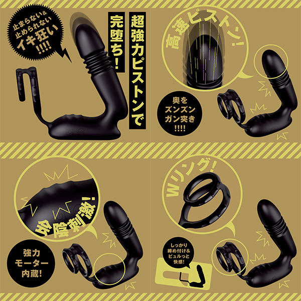 奥深くまで刺激するピストンアクションと強力振動を組み合わせた、アナニー専用バイブです。快感を引き出す3つのピストンパターンと9種類の振動で、初心者から玄人まで楽しめます♪会陰を同時に刺激するモーターでさらに快感が増し、Wリングでしっかりと締め付けることで、体験を一層強化します!高品質なUSB充電式で、水洗い可能な防水設計です。